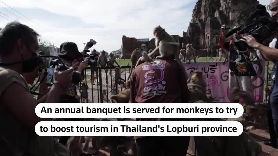 The annual feast for thousands of monkeys in Thailand’s Lopburi province kicked off on Sunday (November 26) with plates of fresh fruits, vegetables and dessert laid out for them.
